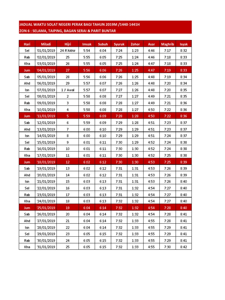 Waktu Solat Zon 6 Selama Taiping Bagan Serai Parit Buntar Pdf